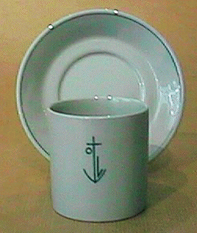 wedgwood coffee cup and saucer for orient line with kauffer designed ol symbol c1930's £80