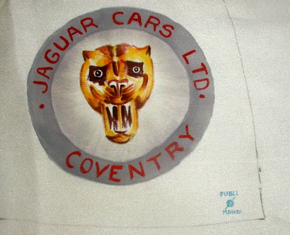 rare handpainted Jaguar XK artwork on silk, c.1950's
