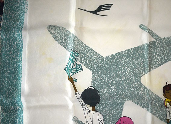 with stylised shadow of aircraft being waved at