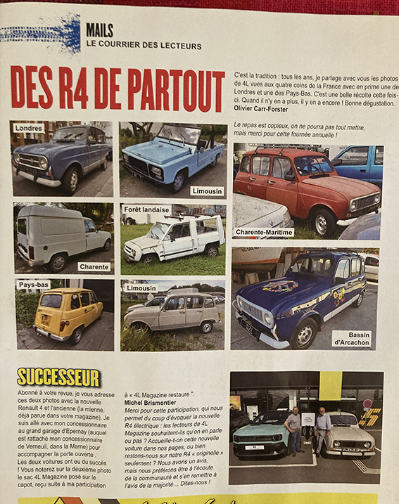 K's photo of our car was used on the front cover of the Renault Owners' Club magazine!