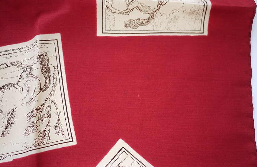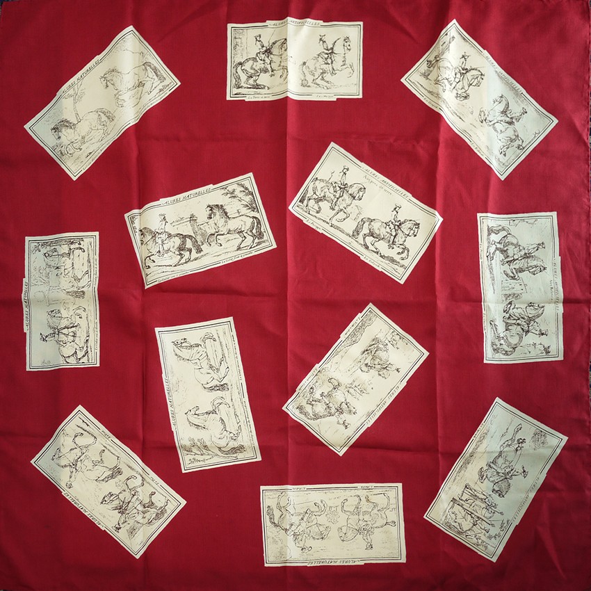 ASCHER rare 1940s silk scarf, horse dressage, rich burgundy red.
