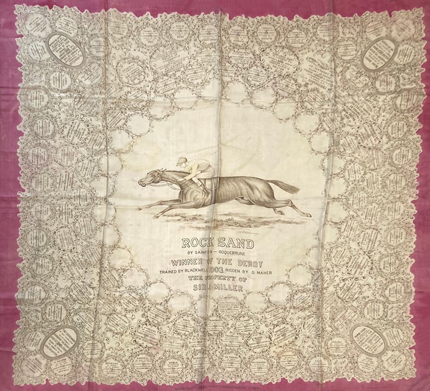 Derby winners silk scarf 1903, printed at Libertys Merton Mills