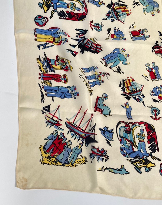 early 1950s silk scarf French mariners, naval