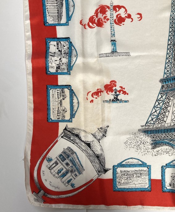 souvenir 1950s Paris silk scarf, eiffel tower,